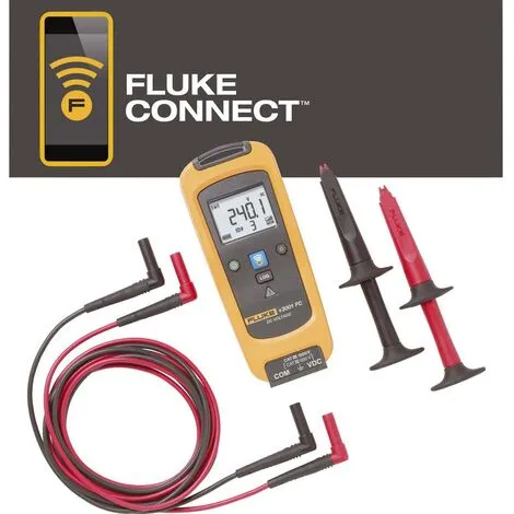 Fluke Connect™ constitue le meilleur moyen de rester en contact avec votre équipe sans quitter le terrain. Fluke Connect™ utilise plus de 20 outils de diagnostic différents pour vous permettre d’identifier et de diagnostiquer les problèmes rapidement et en toute confidentialité, tout en partageant vos données quand vous voulez et avec qui vous voulez en toute sécurité. En outre vous pourrez accéder n’importe où aux données prises en temps réel ou aux historiques à l’aide du système de stockage Fluke Cloud™. Le multimètre sans fil Fluke 3000 FC ainsi que les autres appareils de la série FLK-3000 FC peuvent prendre des mesures en simultané grâce au système de modules sans fil, pour indiquer les résultats à distance et de manière claire et précise sur l’écran du multimètre ou d’un ordinateur. Le multimètre affiche ses propres mesures ainsi que celles de 3 modules sans fil. Vous pourrez de plus consulter les relevés de 10 modules sur l’écran d’un ordinateur grâce à un adaptateur pour PC. La portée sans fil maximum est de 20 m. Les différents modules sans fil peuvent prendre des mesures de température, de tension ou de courant AC. Faites votre choix entre une pince standard et une pince souple pour mesurer le courant AC. Associez les différents modules pour satisfaire vos besoins spécifiques en termes de mesures. Les modules sont disponibles séparément ou sont inclus dans les kits Fluke Connect. Le module de tension DC sans fil Fluke v3001 FC est un voltmètre DC pleinement fonctionnel. Il peut s’utiliser en tant que multimètre autonome ou intégré au système pour transmettre ses mesures à distance au multimètre Fluke 3000 FC ou à un ordinateur via l’adaptateur pc3000 FC en option. L’ID de l’appareil pour identification dans le système peut être choisie librement.